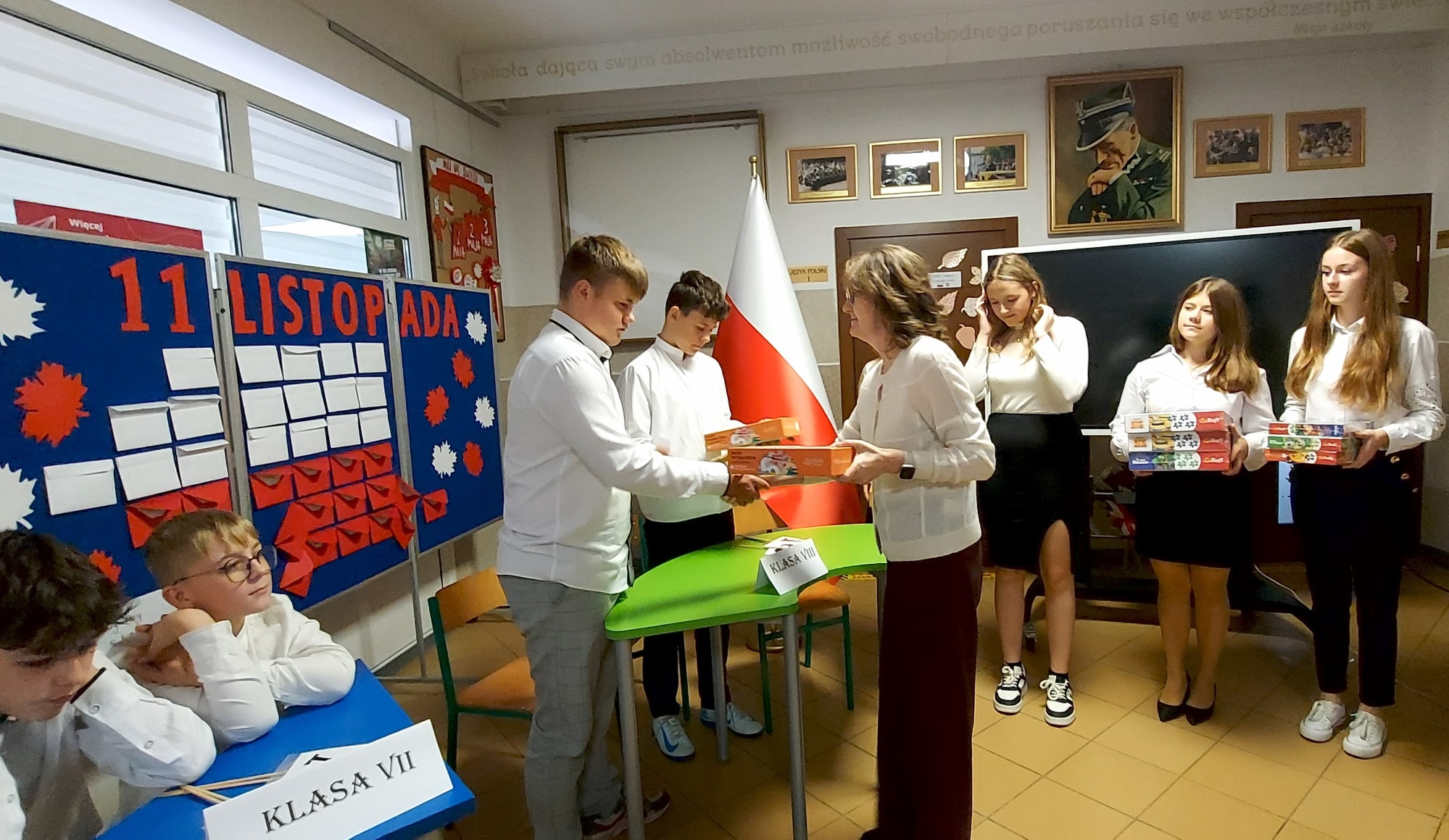 12 listopada 2025r. to szczególny dzień, to 37 rocznica nadania imienia naszej szkole. W tym roku przy współpracy z biblioteką szkolną został zorganizowany konkurs wiedzy o majorze Henryku Sucharskim. Pytania dotyczyły uczestników walk na Westerplatte i Ogólnopolskiego Stowarzyszenia Klubu Szkół Westerplatte. Uczniowie wykazali się dużą wiedzą. Najlepsi zostali nagrodzeni puzzlami ufundowanymi przez firmę Trefl.