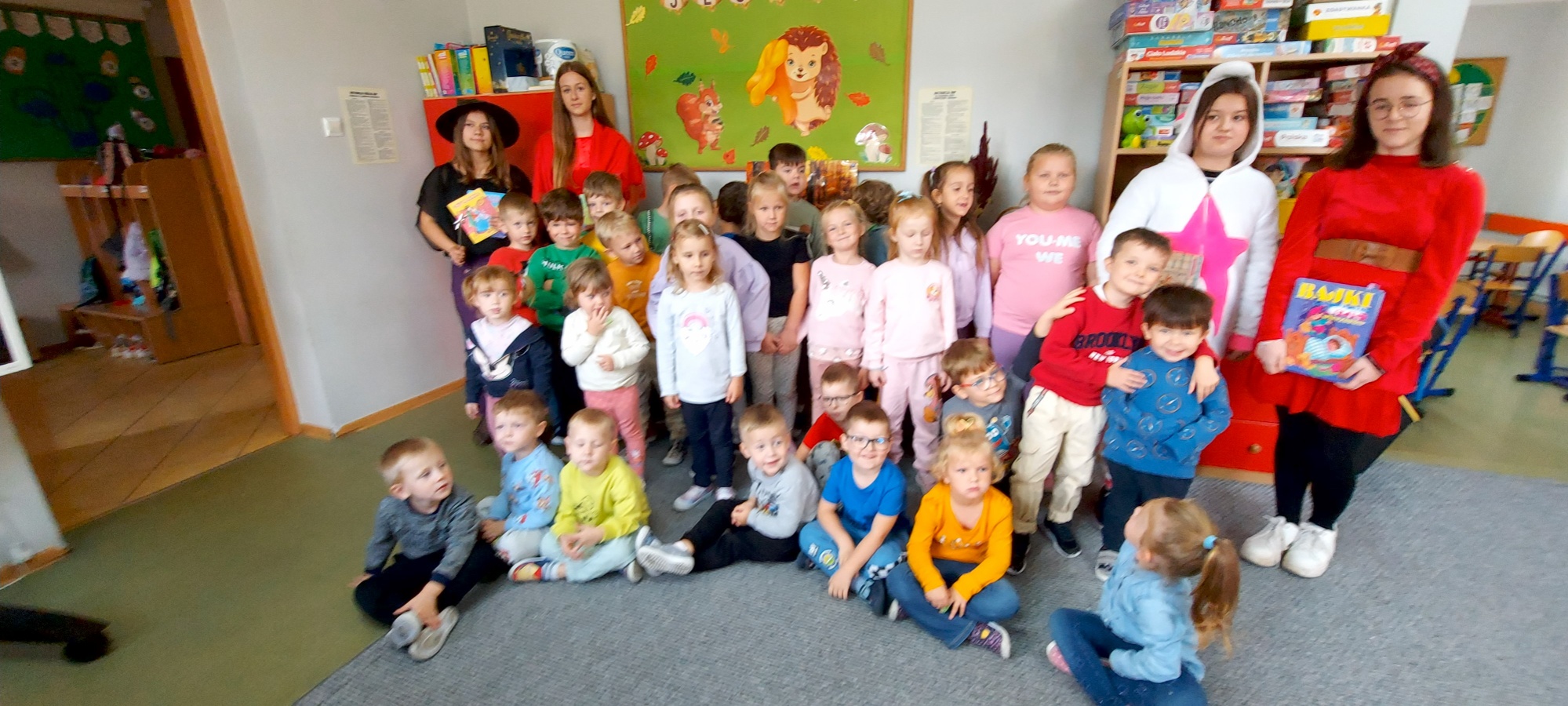 29 września, w słoneczny poniedziałek, uczennice klas V-VIII jako postacie z bajek spotkały się z przedszkolakami. Przybliżały maluchom popularne baśnie i opowiadania. Zachęcały do poznawania bohaterów książek dla dzieci. Na pamiątkę wręczyły zakładki do książek. Przy wspólnej zabawie szybko mijał czas.